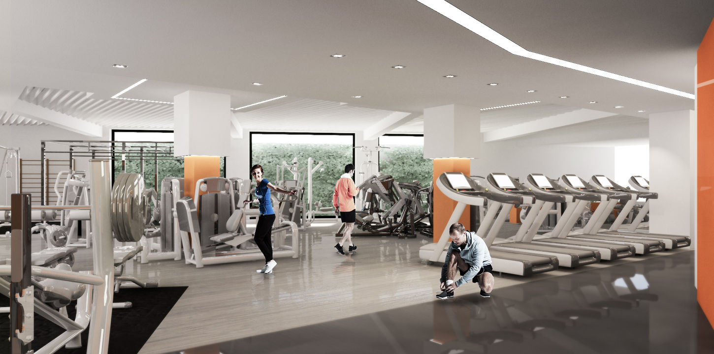 L’iter di trasformazione dei vecchi locali adibiti a centro per il fitness, che risultavano ormai obsoleti sia esteticamente che funzionalmente, è stato affrontato dallo studio in più fasi a seconda delle esigenze della committenza. La struttura si articola in due livelli di cui uno interrato per un totale di oltre 1000 mq. Il primo step ha riguardato gli ambienti principali costituiti da ingresso, e sala attrezzi, per i quali veniva inoltre richiesto di creare una nuova identità, un nuovo volto. In fase di progettazione, la forma particolare dell’ambiente ha fatto scaturire la soluzione di ruotare il senso di lettura della struttura, enfatizzandola con un gioco di tagli al soffitto. Superata la vetrata esterna, l’accesso alle sale avviene intorno ad una reception circolare che caratterizza tutta la zona di ingresso e che viene richiamata dalla controsoffittatura. Step successivi hanno riguardato la progettazione della sala spinning, della sala crossfit e degli spogliatoi che, in linea con il nuovo mood dato al brand, hanno acquistato carattere con l’utilizzo di colori dal forte contrasto tra nero e giallo, adottando soluzioni funzionalmente e tecnologicamente avanzate, così come richiesto ormai in centri fitness importanti.